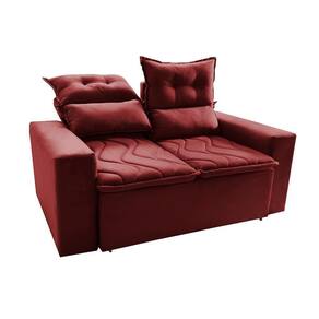 Sofá 3 Lugares Retrátil E Reclinável 1,80m Cama Inbox Smal Com Bordado Pantográfico Suede Vermelho