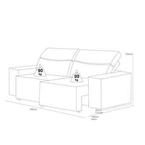 Dimensões: Altura: 100 cm Largura: 200 cm Profundidade: 144 cm Peso: 53,00 kg