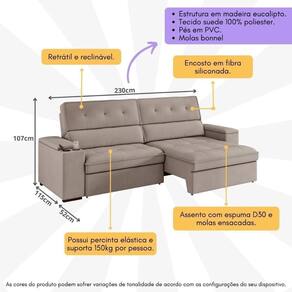 O Sofá 3 Lugares Retrátil e Reclinável 230cm Multimóveis CR45243 é uma peça de destaque para o seu espaço de estar. Sua estrutura em madeira eucalipto garante durabilidade e estabilidade, enquanto o revestimento em tecido suede 100% poliéster confere um toque de sofisticação e suavidade ao toque. Para proporcionar o máximo conforto, o assento é equipado com molas ensacadas e uma camada de espuma D30, garantindo suporte ergonômico e duradouro. O encosto, preenchido com fibra siliconizada, oferece um suporte macio e aconchegante para suas costas. Além disso, a inclusão de molas Bonnel, percinta elástica e corrediça metálica asseguram uma experiência de assento sem igual, combinando firmeza e flexibilidade. Os pés em PVC, resistentes e discretos, complementam o design elegante. Este sofá oferece não apenas conforto supremo, mas também elegância duradoura.