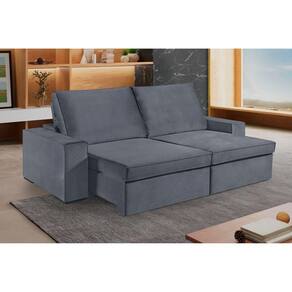 O estofado Samba possui um design moderno e aconchegante. Estrutura em madeira de eucalipto proveniente de reflorestamento, seca e imunizada. Encosto reclinável, preenchido com fibra siliconada, molas ensacadas no pillow proporcionando extremo conforto. Assento retrátil com espuma D28 de fabricação própria, percintas elásticas e molas bonnel. Revestimento em tecido Veludo e pés de madeira. Sofá ideal para deixar sua sala mais bonita e aconchegante. Acompanha Almofadas extras: Não Almofada do assento: Fixa Almofada do encosto: Fixa Altura do assento até o chão: 47 Altura do Encosto: 53 Altura dos Pés: 2.5 Ambiente Principal: Sala de Estar Cor: Grafite Cor do Produto: Grafite Densidade do Assento: D-28 Densidade do Encosto: Camadas de Densidades Diferentes Enchimento do Assento: Espuma Enchimento do Encosto: Fibra Siliconada Estilo de Braço: Braços Quadrados Firmeza do Assento: Macio Itens Inclusos: 1 Sofá Material dos Pés: Madeira Necessita Montagem: Não Origem do Produto: Nacional Peso: 90 Pet Friendly: Não Possui Percintas Elásticas: Sim Possui Pés: 08 Possui Rodízio: Não Profundidade Quando Estendido: 170 Recomendações de Uso, Manutenção e Limpeza: Dicas de uso e conservação: Use somente água e sabão neutro na proporção 19:1. Para limpar, utilize pano branco umedecido em água morna e sabão neutro, removendo qualquer resíduo de sabão ao ?nal da limpeza; Não use produtos químicos, eles podem dani?car o revestimento; Quando for necessário lavar os tecidos, faça somente lavagem a seco em empresas especializadas. Revestimento do Braço: espuma Suporta Até (kg): 300 Tecido Predominante: Veludo Tipo de Encosto: Regulável Tipo de Mola: Molas Bonnel Ean: 7909903443927