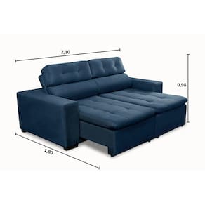 É  o ideal para apartamentos, pois tem o comprimento total de 2,10 m e tem área interna de assentos `` Entre Braços `` com 1,60 m, que acomodam de 3 a 4 pessoas .
