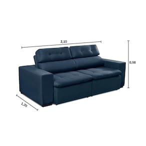Sofá 3 Lugares Retrátil e Reclinável Antonela 2,10m Suede Azul Madelina Decor - Azul Petróleo