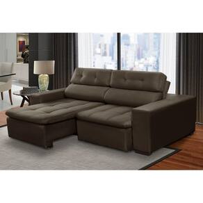 É o ideal para apartamentos, pois tem o comprimento total de 2,10 m e tem área interna de assentos `` Entre Braços `` com 1,60 m, que acomodam de 3 a 4 pessoas .