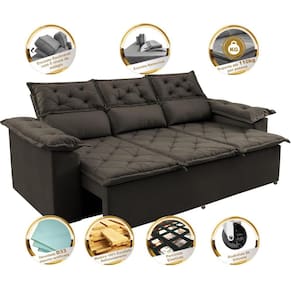 Informações do Produto: *Assentos: Feitos com espuma D33, Fibra Siliconada, Percintas Elásticas e Madeira de Eucalipto, sua estrutura foi desenvolvida para dar mais qualidade e praticidade ao seu dia a dia. *Encosto: Possuindo 5 níveis de estágios, seus encostos são reclináveis. Suas almofadas do encosto são removíveis, podendo retira-las da base. Além disso são compostas de 80% fibra siliconada, 20% flocos de espuma que proporcionam maior conforto. *Braços: Com design lindo e almofadado, seus braços medem 20cm de largura cada um e são feitos com espuma D33. *Estrutura: É utilizada a Madeira de Eucalipto 100% de reflorestamento, sendo um produto ecologicamente correto e sustentável. Para fixar as partes, são utilizados grampos galvanizados, permitindo uma melhor fixação da estrutura. *Tecido: Com um toque macio e gostoso, o tecido utilizado é o Suede Velusoft.