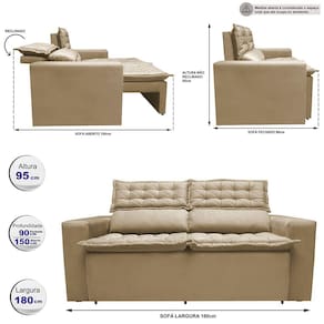 Informações do Produto: *Assentos: Feitos com espuma D33, Fibra Siliconada, Percintas Elásticas e Madeira de Eucalipto, sua estrutura foi desenvolvida para dar mais qualidade e praticidade ao seu dia a dia. *Encosto: Possuindo 5 níveis de estágios, seus encostos são reclináveis. Suas almofadas do encosto são removíveis, podendo retira-las da base. Além disso são compostas de 80% fibra siliconada, 20% flocos de espuma que proporcionam maior conforto. *Braços: Medindo 20cm de largura cada um, seus braços são feitos com espuma D33. *Estrutura: É utilizada a Madeira de Eucalipto 100% de reflorestamento, sendo um produto ecologicamente correto e sustentável. Para fixar as partes, são utilizados grampos galvanizados, permitindo uma melhor fixação da estrutura. *Tecido: Com um toque macio e gostoso, o tecido utilizado é o Suede.