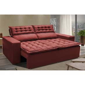 Sofá 3 Lugares Retrátil E Reclinável Cama Inbox Slim 1,80m Velusoft Vermelho
