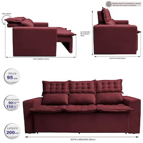 Informações do Produto: *Assentos: Feitos com espuma D33, Fibra Siliconada, Percintas Elásticas e Madeira de Eucalipto, sua estrutura foi desenvolvida para dar mais qualidade e praticidade ao seu dia a dia. *Encosto: Possuindo 5 níveis de estágios, seus encostos são reclináveis. Suas almofadas do encosto são removíveis, podendo retira-las da base. Além disso são compostas de 80% fibra siliconada, 20% flocos de espuma que proporcionam maior conforto. *Braços: Medindo 20cm de largura cada um, seus braços são feitos com espuma D33. *Estrutura: É utilizada a Madeira de Eucalipto 100% de reflorestamento, sendo um produto ecologicamente correto e sustentável. Para fixar as partes, são utilizados grampos galvanizados, permitindo uma melhor fixação da estrutura. *Tecido: Com um toque macio e gostoso, o tecido utilizado é o Suede Velusoft.
