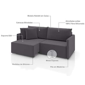 sofá 3 lugares retrátil e reclinável malta veludo grafite 200 cm
