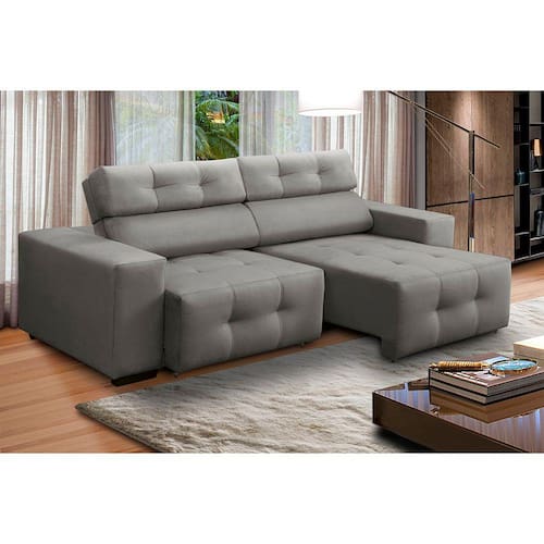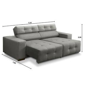Sofá 3 Lugares Retrátil e Reclinável Mariana 2,10m Suede Cinza Madelina Decor