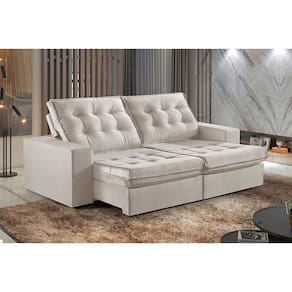 Características: Requer Montagem?: Sim Acessóios inclusos: Não Acompanha Chaise?: Não Tipo do Acento, tem Pillow Top?: Retrátil, Com Pillow Top De 20 Cm Densidade Espuma Assento: D-28 Possui Mola no Assento? Tipo de mola?: Sim, Molas Ensacadas Possui Persinta? Tipo de Persinta: Sim, Percinta Elastica Tipo do Encosto: Reclinável Amofadas do encosto Fixa ou Solta?: Encosto Reclinável, Almofadas Fixa Densidade Espuma Encosto: 100 Fibra Silicone Posui Pés -Sim ou Não-: Sim Quantidade de Pés: 8 Tipo de Pés -Material-: Madeira Acompanha Rodízio -Sim ou Não-: Sim Quantidade de Rodízios: 2 Rodízios Material Rodízio: Silicone Matéria Prima: Elcalipto Tratado Revestimento: Espuma D-28 Soft Madeira Aparelhada ou Bruta?: Aparelhada A Madeira é Tratada? -Sim ou Não-: Sim Tipo de Trilho Onde Corre o Retrátil?: Tubo Pintado É Bipartido ou Inteiriço?: Bipartido Estagios da Catraca: Catacra 5 Estágios