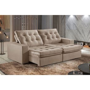Características: Requer Montagem?: Sim Acessóios inclusos: Não Acompanha Chaise?: Não Tipo do Acento, tem Pillow Top?: Retrátil, Com Pillow Top De 20 Cm Densidade Espuma Assento: D-28 Possui Mola no Assento? Tipo de mola?: Sim, Molas Ensacadas Possui Persinta? Tipo de Persinta: Sim, Percinta Elastica Tipo do Encosto: Reclinável Amofadas do encosto Fixa ou Solta?: Encosto Reclinável, Almofadas Fixa Densidade Espuma Encosto: 100 Fibra Silicone Posui Pés -Sim ou Não-: Sim Quantidade de Pés: 8 Tipo de Pés -Material-: Madeira Acompanha Rodízio -Sim ou Não-: Sim Quantidade de Rodízios: 2 Rodízios Material Rodízio: Silicone Matéria Prima: Elcalipto Tratado Revestimento: Espuma D-28 Soft Madeira Aparelhada ou Bruta?: Aparelhada A Madeira é Tratada? -Sim ou Não-: Sim Tipo de Trilho Onde Corre o Retrátil?: Tubo Pintado É Bipartido ou Inteiriço?: Bipartido Estagios da Catraca: Catacra 5 Estágios