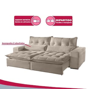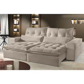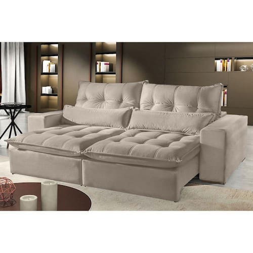 Sofá 3 Lugares Retrátil e Reclinável Máximo Veludo Bege - Móveis Mix Exclusividade de Fábrica Estofado Retrátil Máximo - Móveis Mix Com os Estofados Móveis Mix Você Leva Conforto e Beleza Para o Seu Lar. Seu Design Remete Aconchego e Você Ainda Leva de Lindas Almofadas Rineira!