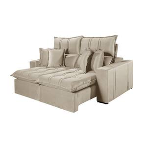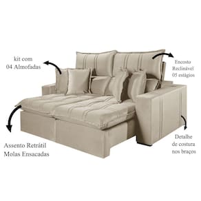 Sofá 3 Lugares Retrátil e Reclinável México Veludo com Molas Ensacadas Bege Marfim