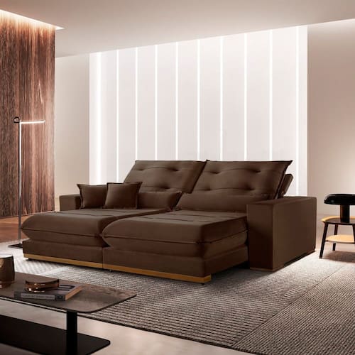 Sofá 3 Lugares Retrátil e Reclinável Veludo 250cm X 105cm Suíça Marrom
