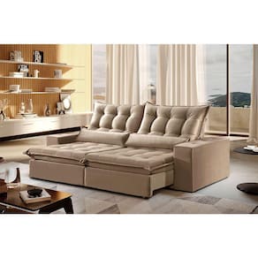 Sofá 3 Lugares Retrátil e Reclinável Vênus Veludo Palha - Móveis Mix Com os Estofados Móveis Mix Você Leva Conforto e Beleza Para o Seu Lar. Seu Design Remete Aconchego e Você Ainda Leva Lindas Almofadas Rineira.