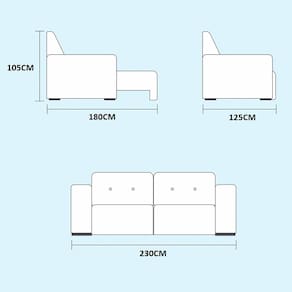 Dimensões do Produto: Altura aproximada: 105cm. Largura aproximada: 230 cm. Abertura aproximada: 180cm. Módulos: 90cm. Comprimento: 230cm. Braços: 25cm.