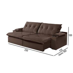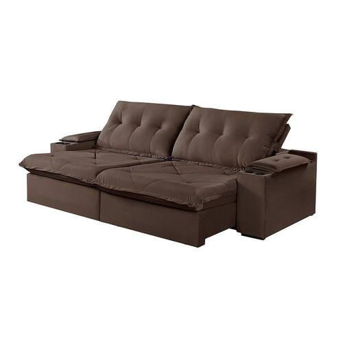 Sofá 3 Lugares Retrátil Martins M-163 Com Acessórios Veludo Marrom Sofa 3 Lugares Retratil e Reclinavel Martins M-163 Com Acessorios Veludo Caracteristicas: Requer Montagem?: Sim Acessoios inclusos: Porta Copo No Braco Acompanha Chaise?: Nao Tipo do Acento, tem Pillow Top?: Retratil, Com Pillow Top De 20 Cm Densidade Espuma Assento: D-28 Possui Mola no Assento? Tipo de mola?: Sim, Molas Ensacadas Possui Persinta? Tipo de Persinta: Sim, Percinta Elastica Tipo do Encosto: Reclinavel Amofadas do encosto Fixa ou Solta?: Encosto Reclinavel, Almofadas Fixa Densidade Espuma Encosto: 100 Fibra Silicone Tem pillow nos Bracos?: Pillow Top 4 Cm Espuma D-28 Posui Pes (Sim ou Nao): Sim Quantidade de Pes: 8 Tipo de Pes (Material): Madeira Acompanha Rodizio (Sim ou Nao): Sim Quantidade de Rodizios: 2 Rodizios Material Rodizio: Silicone Materia Prima: Elcalipto Tratado Revestimento: Espuma D-28 Soft Madeira Aparelhada ou Bruta?: Aparelhada A Madeira e Tratada? (Sim ou Nao): Sim Tipo de Trilho Onde Corre o Retratil?: Tubo Pintado E Bipartido ou Inteirico?: Bipartido Estagios da Catraca: Catacra 5 Estagios
