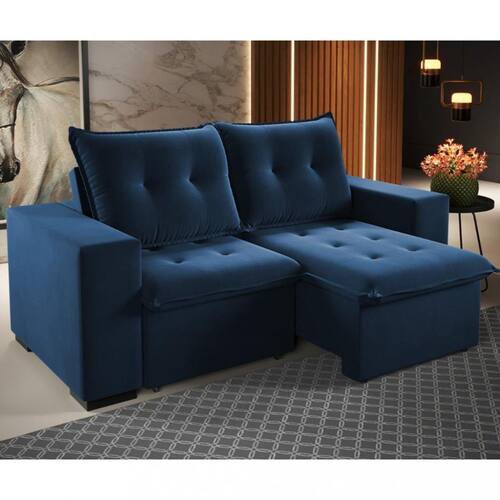 Sofá 3 Lugares Retrátil Reclinável 204cm Major Veludo Viero Móveis - Azul Marinho