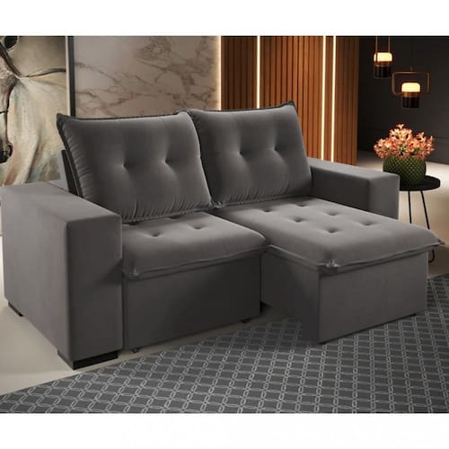 Características: Estrutura em Eucalipto 4 Pés 4 Rodízios Retrátil corre no tubo Reclinável em até 5 posições Duplo Molejo Pillow top Molas ensacadas Espuma D23 Encosto 100 fibra siliconada Bipartido Revestido com tecido veludo Suporta até 270kg totais