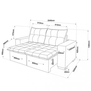 Dimensões: Altura: 109 cm Largura: 204,5 cm Profundidade: 102 cm Peso: 92,00 kg