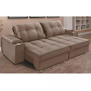 Características: Estrutura em Eucalipto-Pinus 3 lugares dispostos em 2 assentos Reclinável 4 estágios Almofadas do assento e encosto fixas Retrátil Percintas elásticas Acompanha 2 porta copos Revestimento do braço em espuma D16 4 rodízios de silicone Consistência do assento média em espuma D23 Enchimento do encosto em fibra siliconada 8 pés em PVC Revestimento em tecido Veludo Premium Suporta até 120 kg por assento