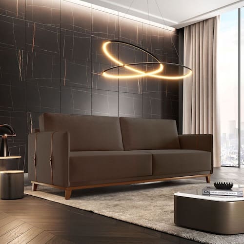 O sofá de Dubai, feito com materiais excepcionais, é a combinação perfeita de beleza, conforto e sofisticação. Sua estrutura é robusta, construída com madeira de alta qualidade, que garante durabilidade e estabilidade. O estofado, revestido em tecido macio e luxuoso, oferece um toque agradável ao toque, permitindo relaxamento total. O design é moderno e elegante, com linhas clean e minimalistas, criando um visual contemporâneo que se adapta perfeitamente a ambientes sofisticados. Produto Montado: Sim Acompanha Almofadas extras: Não Almofada do assento: Fixa Almofada do encosto: Fixa Altura do assento até o chão: 45.0000 Altura do Encosto: 40 cm Altura dos Pés: 13 cm Altura Máxima dos Pés: 13.0000 Ambiente Principal: Sala de Estar codigo_ean: 7900288026026 Complexidade da Montagem: Baixa: pode ser montado por uma pessoa sozinha Cor: Marrom Cor do Produto: Marrom Densidade do Assento: D-28 Enchimento do Assento: Espuma Firmeza do Assento: Médio Itens Inclusos: 1 Sofá + 1 kit pés Marca: Encantare Material dos Pés: Madeira Necessita Montagem: Sim Peso: 70 kg Pet Friendly: Não Possui Percintas Elásticas: Sim Possui Pés: 05 Possui Rodízio: Não Recomendações de Uso, Manutenção e Limpeza: Limpeza com pano seco Sistema de Montagem: Parafusos Suporta Até (kg): 100 kg Tecido Predominante: Veludo Tipo de Encosto: Fixo Tipo de Mola: Molas Bonnel Tipo de Sofá: Sofá Comum Marca: Encantare
