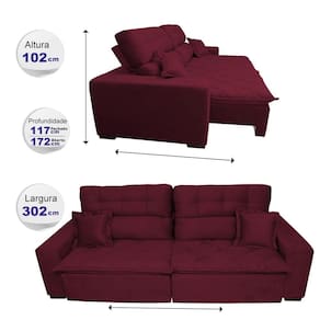 Sofá 3,02m Retrátil e Reclinável com Molas Cama inBox Confort Tecido Suede Velusoft Vinho