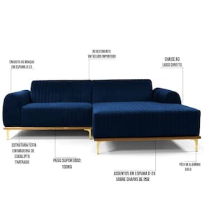 Sendo assim, o Sofá 320cm 5 Lugares Com Chaise Direito Pés Gold Molino da Domi é a escolha certeira para compor sua sala de estar! Feito em madeira de Eucalipto, encosto e assentos fixos em espuma de qualidade D-23 e D28, respectivamente, conta com design inovador e moderno para melhor aproveitamento. Além disso a sua composição não para por aí! Seu revestimento em veludo agrega um toque de modernidade ímpar ao cômodo.
