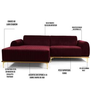 Sendo assim, o Sofá 320cm 5 Lugares Com Chaise Esquerdo Pés Gold Molino da Domi é a escolha certeira para compor sua sala de estar! Feito em madeira de Eucalipto, encosto e assentos fixos em espuma de qualidade D-23 e D28, respectivamente, conta com design inovador e moderno para melhor aproveitamento. Além disso a sua composição não para por aí! Seu revestimento em veludo agrega um toque de modernidade ímpar ao cômodo.