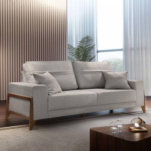 O Sofá M130 é um exemplo de estofado confortável. Além de ser um modelo totalmente moderno ele é ideal para você que procura um sofá que tenha um visual deslumbrante e que marque presença no ambiente. Além de toda a sua beleza e conforto o sofá tem como sua principal característica a qualidade, é fabricado no Brasil com materiais de alto padrão aliado a tecnologia de ponta. Acompanha Almofadas extras: 02 Almofada do assento: Fixa Almofada do encosto: Removível Altura do assento até o chão: 53 Altura do Encosto: 36 Altura dos Pés: 13 Ambiente Principal: Sala de Estar Complexidade da Montagem: Cor: Linho/Cinza Claro Cor do Produto: Linho/Cinza Claro Densidade do Assento: D-28 Densidade do Encosto: D-18 Enchimento do Assento: Espuma Enchimento do Encosto: Fibra Siliconada Estilo de Braço: Braços Largos Firmeza do Assento: Firme Informações Complementares: Itens Inclusos: 1 Sofá Largura do Sofá Maior: Linha ou Coleção: Manual de Especificação Técnica: Manual de Montagem e Instalação: Material dos Pés: Base e pés em madeira Montagem Flex: Necessita Montagem: Não Origem do Produto: Nacional Peso: 90 Pet Friendly: Não Possui Percintas Elásticas: Sim Possui Pés: 03 Possui Rodízio: Não Profundidade Quando Estendido: Recomendações de Uso, Manutenção e Limpeza: Limpar com flanela limpa e seca. Não usar produtos abrasivos. Resistente à Chuva: Não Revestimento do Braço: Linho Rodízio com Trava: Sistema de Montagem: Suporta Até (kg): 120 Tamanho: Tecido Predominante: Linho Tipo de Encosto: Fixo Tipo de Mola: Molas Bonnel