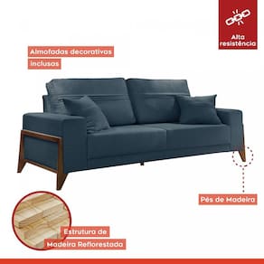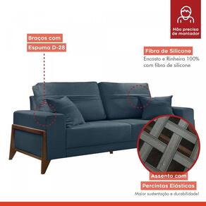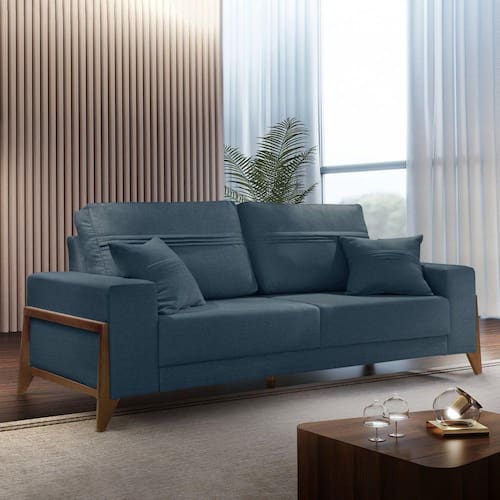 Além de toda a sua beleza e conforto o sofá tem como sua principal característica a qualidade, é fabricado no Brasil com materiais de alto padrão aliado a tecnologia de ponta. Produto Montado: Não Almofada do assento: Fixa Almofada do encosto: Removível Altura do assento até o chão: 53.0000 Altura do Encosto: 36 cm Altura dos Pés: 13 cm Ambiente Principal: Sala de Estar codigo_ean: 7909903007983 Cor: Linho/Azul Petroleo Densidade do Assento: D-28 Enchimento do Assento: Espuma Enchimento do Encosto: Fibra Siliconada Estilo de Braço: Braços Largos Material dos Pés: Madeira Necessita Montagem: Não Origem do Produto: Nacional Peso: 90 kg Pet Friendly: Não Possui Percintas Elásticas: Sim Recomendações de Uso, Manutenção e Limpeza: Limpar com flanela limpa e seca. Não usar produtos abrasivos. Tecido Predominante: Linho Tipo de Mola: Molas Bonnel