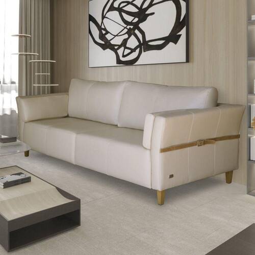 Sofá 4 Lugares 240cm Couro Legítimo Malibu Scala Decor Bege 66