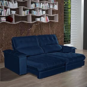 Sofá 4 Lugares 2,50m Retrátil e Reclinável Girona Bom Pastor - Azul