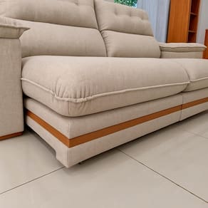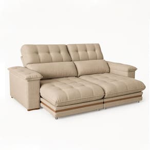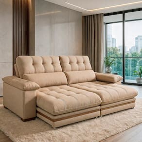 Com molas ensacadas e pillow top de 30 cm, o estofado oferece maciez e sustentação na medida certa. Quando aberto, alcança 1,80 m de profundidade, transformando-se praticamente em uma chaise para momentos de descanso e lazer. Seu design robusto com 1,10 m de altura e 1,20 m de profundidade quando fechado confere imponência e sofisticação ao ambiente.