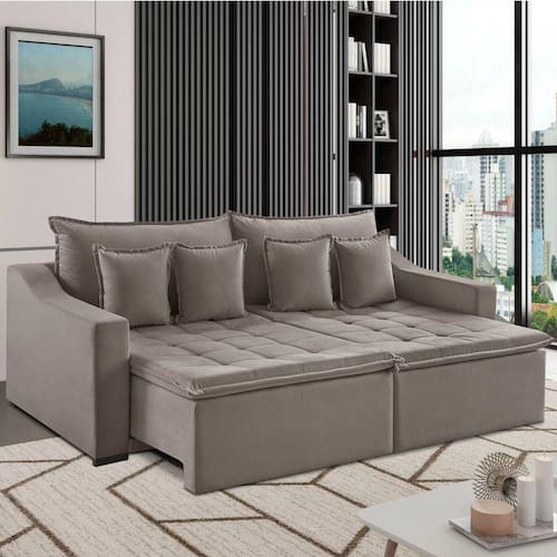 Presente nos lares dos consumidores mais exigentes, a ESTOFART mantém uma trajetória de sucesso desde 1991, investindo sempre na qualidade, em novas tecnologias e no design contemporâneo. Dentro da nova coleção 2023 está o Estofado AMY, feito com madeira de reflorestamento e revestido com Veludo 100% poliéster. No assento, além do Pillow Top com espuma D28 Supersoft, possui também molas de aço que auxiliam na sustentação, aumentando o conforto e a durabilidade do produto; o encosto possui enchimento de fibra de silicone. Possui ainda rodinhas de silicone e pés de madeira maciça envernizados. O design diferenciado e a atenção aos acabamentos e detalhes durante todas as etapas de produção, fazem do Estofado AMY sinônimo de versatilidade e conforto para a sua casa. Acompanha Almofadas extras: 04 Almofada do assento: Fixa Almofada do encosto: Fixa Altura do assento até o chão: 50 Altura do Encosto: 47 Ambiente Principal: Sala de Estar Complexidade da Montagem: Baixa: pode ser montado por uma pessoa sozinha Cor: Bege Marroml Cor do Produto: Bege Marroml Densidade do Assento: D-28 Densidade do Encosto: Camadas de Densidades Diferentes Enchimento do Assento: Espuma Enchimento do Encosto: Fibra Siliconada Estilo de Braço: Braços Quadrados Firmeza do Assento: Médio Itens Inclusos: 1 Sofá Linha ou Coleção: Amy Manual de Montagem e Instalação: https://cdn2.madeiramadeira.com.br/atributo/estofart/1277790-estofado-amy-estofart.pdf Material dos Pés: Madeira Maciça Necessita Montagem: Sim Origem do Produto: Nacional Peso: 108 Pet Friendly: Não Possui Percintas Elásticas: Sim Possui Pés: 08 Possui Rodízio: Não Profundidade Quando Estendido: 154 Recomendações de Uso, Manutenção e Limpeza: - Não expor ao sol ou fonte de calor; Não utilizar produtos de limpeza como detergente, álcool, solventes, ou produtos químicos; Para a limpeza, utilizar pano umedecido em água, sabão neutro e escova de cerdas macias, deixando secar a sombra. Em caso de excesso de poeira, usar aspirador de pó; Não provocar tensões desproporcionais no assento do sofá, provocadas pro quedas ou pulos; Evitar contatos com animais; Preservar o produto de objetos aquecidos ou pontiagudos; Mantê-lo em local arejado; Transportar com o máximo de cautela. Revestimento do Braço: Veludo Sistema de Montagem: Parafusos Suporta Até (kg): 100 Tecido Predominante: Veludo Tipo de Encosto: Regulável Tipo de Mola: Molas Espirais