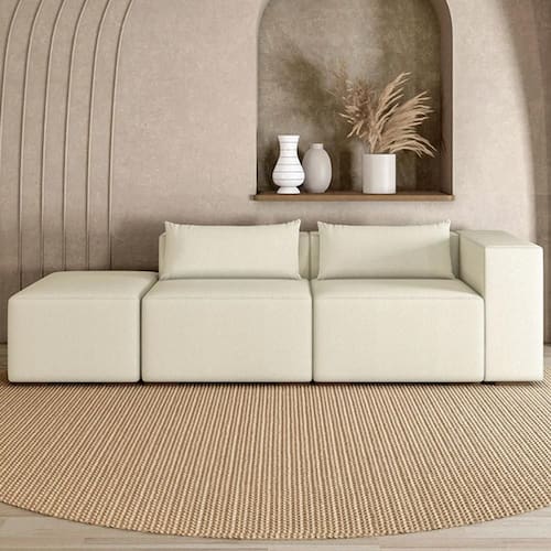 Com assento em espuma HR26, molas bonel e percintas trançadas, oferece firmeza e conforto na medida certa. Perfeito para relaxar, principalmente quando combinado com um Sofá Com Puff.