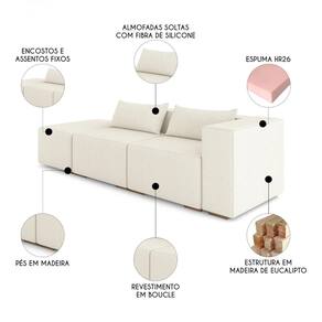 Sofá 4 Lugares 283cm com Puff Esquerdo Fay Bouclê Cru Z55 - Mpozenato - Branco