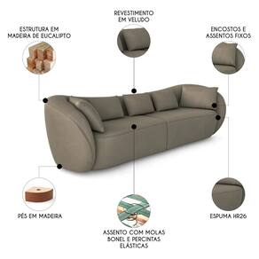 Sofá 4 Lugares 292cm Orgânico Pé Madeira Yume Veludo Marrom Z55 - Mpozenato