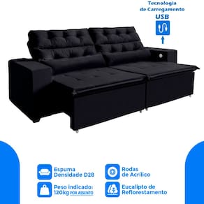 Ele possui encosto reclinável em cinco posições, proporcionando-lhe mais conforto na hora do descanso. E não para por aí: seu assento retrátil conta com espuma D28 e molas espirais, transformando seu sofá em uma verdadeira cama para assistir seu filme preferido.