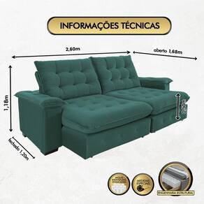 Sofá Coliseu Retrátil e Reclinável Super Pillow 2,60m - Sofisticato