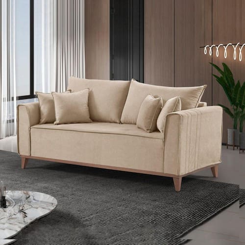 O Sofá M46 é um exemplo de estofado confortável. Além de ser um modelo totalmente moderno ele é ideal para você que procura um sofá que tenha um visual deslumbrante e que marque presença no ambiente. Além de toda a sua beleza e conforto o sofá tem como sua principal característica a qualidade, é fabricado no Brasil com materiais de alto padrão aliado a tecnologia de ponta. Acompanha Almofadas extras: 04 Almofada do assento: Fixa Almofada do encosto: Removível Altura do assento até o chão: 54 Altura do Encosto: 35 Altura dos Pés: 13 Ambiente Principal: Sala de Estar Complexidade da Montagem: Cor: Linho/Bege Cor do Produto: Linho/Bege Densidade do Assento: D-28 Densidade do Encosto: D-18 Enchimento do Assento: Espuma Enchimento do Encosto: Fibra Siliconada Estilo de Braço: Braços Largos Firmeza do Assento: Firme Informações Complementares: Itens Inclusos: 1 Sofá Largura do Sofá Maior: Linha ou Coleção: Manual de Especificação Técnica: Manual de Montagem e Instalação: Material dos Pés: Madeira Montagem Flex: Necessita Montagem: Não Origem do Produto: Nacional Peso: 80 Pet Friendly: Não Possui Percintas Elásticas: Sim Possui Pés: 05 Possui Rodízio: Não Profundidade Quando Estendido: Recomendações de Uso, Manutenção e Limpeza: Limpar com flanela limpa e seca. Não usar produtos abrasivos. Resistente à Chuva: Não Revestimento do Braço: Linho Rodízio com Trava: Sistema de Montagem: Suporta Até (kg): 120 Tamanho: Tecido Predominante: Linho Tipo de Encosto: Fixo Tipo de Mola: Molas Bonnel