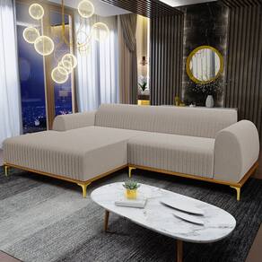 O Sofá com Chaise Esquerdo Para Sala de Estar Molino 265cm D02 da Lyam Decor, exala formosura e elegância! Excelente opção para dispor em sua sala de estar ou espera, recepção, hall de entrada, dormitório, qualquer área de circulação ou antessala entre um cômodo e outro, as possibilidades de combinação são infinitas. Seu protagonismo é notório, sem sombra de dúvidas é perfeita para qualquer ambientação que desejar colocá-la. Com sua resistente estrutura, na cor castanho com detalhes em dourado, deixarão sua decoração ainda mais sofisticada. Oferecendo máximo conforto sem deixar de transmitir todo a magnitude que seu lar merece!