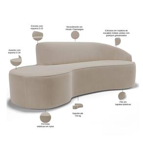 Sofá 4 Lugares Curvo Sala de Estar Living Firenze Direito D02 Veludo Champagne 260 cm C-68 - Lyam - Off White