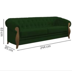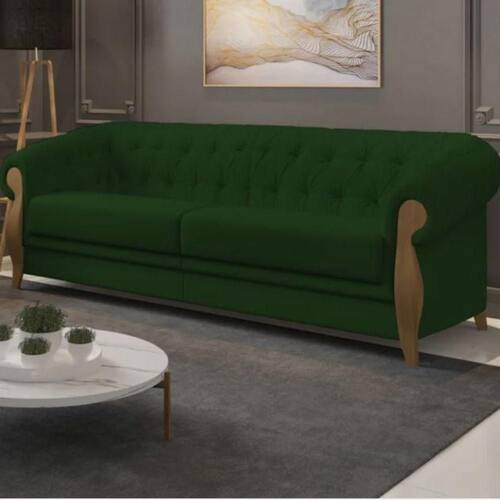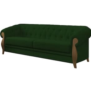 Embalagem: Papelão corrugado nas laterais e no rodapé da peça. Plástico de polietileno transparente e malha envolvendo a peça. Isomanta nas laterais do braço. Revestimento: Ampla variedade de cores, padronagens e texturas, acompanhando as tendências atuais de mercado. Acabamento inferior: Tela de Ráfia. Pés em madeira tingidos. Estrutura: Madeira de reflorestamento, imunizada contra mofo, cupim e microorganismos (pinus, eucaliptus e placas de OSB). Sustentação do assento e encosto com cintas elásticas de alta resistência. Espuma: Encosto fixo. D26 com manta acrílica. Assento: D26 com manta acrílica. Braça: D26 com manta acrílica. Adornos: D16.