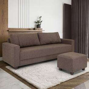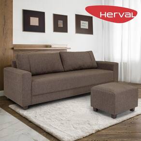 Madeira de eucaliptoSofá 4 Lugares e Puff Herval Clean Linho Marrom, 230 cm