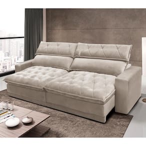 Produzido com materiais de alta qualidade, ele apresenta estrutura em madeira de reflorestamento, revestimento em tecido veludo de grande resistência e toque macio, assento retrátil estruturado por percinta elástica e molas espirais, encosto reclinável com almofadas fixas, braços e divisão entre lugares.