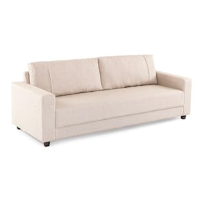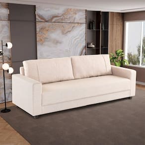 Madeira de Eucalipto de reflorestamento, grampos de aço, cola PVA, PU injetado.Sofá 4 Lugares Herval Clean Linho Bege, 230 cm