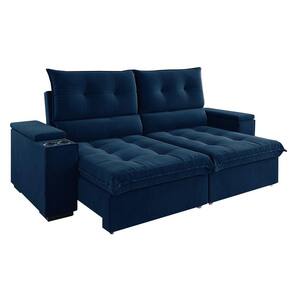 Sofá 4 Lugares Horus Bipartido 230cm Retrátil e Reclinável com Porta Copos Azul - Azul Doce
