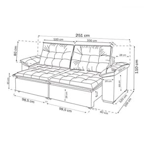 - Medidas do Sofá Aberto (A x L x P):: 110 x 251 x 156 Cm