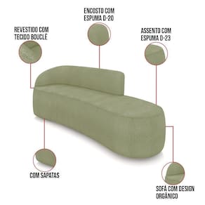 O Sofá 4 Lugares Orgânico Morgan de 220 cm, é a combinação perfeita de conforto e estilo. Com uma estrutura robusta de madeira de eucalipto e MDF, este sofá garante durabilidade e resistência. Os assentos e encostos são fixos, o encosto é preenchido com espuma D-20, proporcionando suporte ideal para suas costas, enquanto o assento com espuma D-23 oferece uma experiência de assento firme e aconchegante. O elegante revestimento em Bouclê na sofisticada cor Pistache é uma escolha que combina conforto com um toque de modernidade. O design orgânico remete às formas encontradas na natureza como ondas, folhas ou conchas que além de se moldarem ao corpo humano, evocam uma sensação de calma e equilíbrio. Seu formato curvo e sem braços traz um toque de modernidade, permitindo que o sofá se encaixe harmoniosamente em diversos estilos de decoração, desde o minimalista até o mais ousado. A fluidez das linhas cria um ambiente acolhedor e convidativo, perfeito para qualquer ocasião. As sapatas plásticas são pequenas proteções colocadas na base dos pés do sofá para evitar que eles risquem ou danifiquem o chão. Além de proteger o piso, essas sapatas ajudam a distribuir o peso do sofá de maneira mais uniforme. Seja para receber amigos, relaxar após um dia longo ou simplesmente adicionar um toque de elegância ao seu lar, o Sofá Orgânico é a escolha ideal. Não perca a oportunidade de elevar a decoração da sua casa com esta peça única. Adquira já o seu e descubra o que é conforto e estilo em um só lugar!